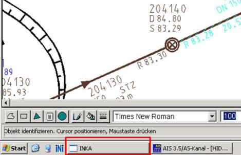 Um das Anzeigen zu beenden, ist daher im INKA-Sachdatendialog dieser über die Schaltfläche „Schließen“ zu beenden. Sollte der INKA-Dialog nicht sichtbar sein, da er sich gerade hinter dem AIS-Fenster befindet, kann dieser über einen Klick auf das Programm INKA in der Taskleiste in den Vordergrund gebracht werden.