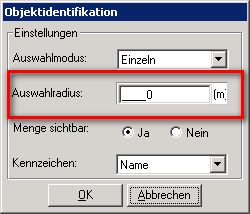 Der Standardwert „1“ im Feld Auswahlradius ist auf „0“ m zu ändern.