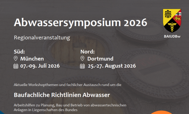 Das Abwassersymposium 2026 wird vom Bundesamt für Infrastruktur, Umweltschutz und Dienstleistungen der Bundeswehr im Auftrag des Bundesministeriums der Verteidigung (BMVg) ausgerichtet.